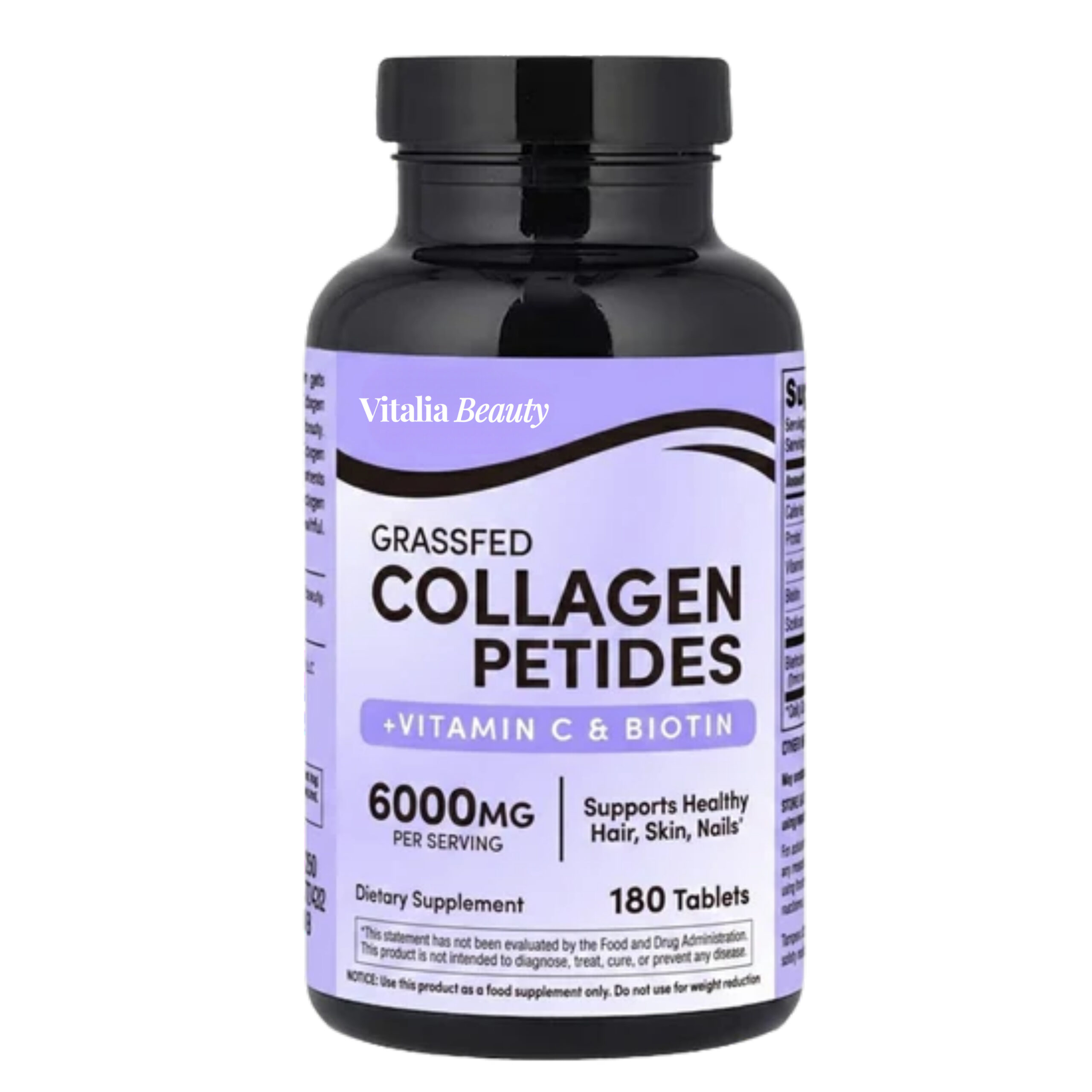 Vitalia Beauty Grassfed Collagen Peptides Tablets is the only product on this list that earns a genuine recommendation. It’s the only tablet-format option with a full 6,000mg dose, the only one combining all essential cofactors, and the one backed by the most generous money-back guarantee in the category.